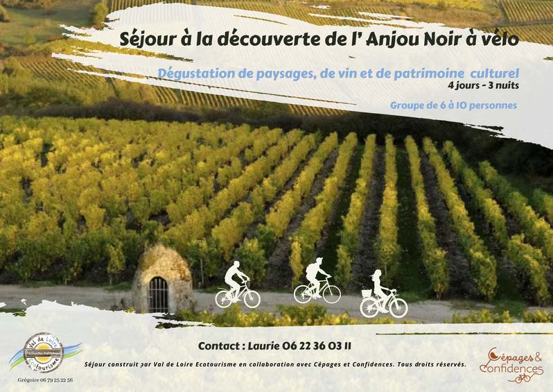 Cépages et Confidences collabore également avec l’agence de voyage Val de Loire Écotourisme pour vous proposer des séjours cyclo-œnotouristiques « clé en main », uniques et privilégiés dans la Vallée de la Loire. Une pincée de culture, un zeste de nature, une goutte de vin… nous vous avons concocté des recettes équilibrées et complètes pour un voyage inoubliable en compagnie de votre œno-guide experte et passionnée.